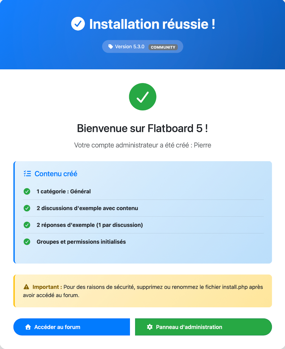 Pourtant, l'installation semble celle d'une version complète et le système semble correct sauf en cliquant sur Accéder au Forum ou Accéder au panneau d'administration ou encore en voulant me connecter. Rien ne fonctionne. La connexion ouvrant une page d'erreur 404.