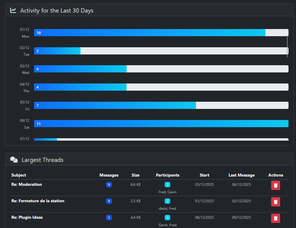 - Regularly clean up large threads via admin dashboard