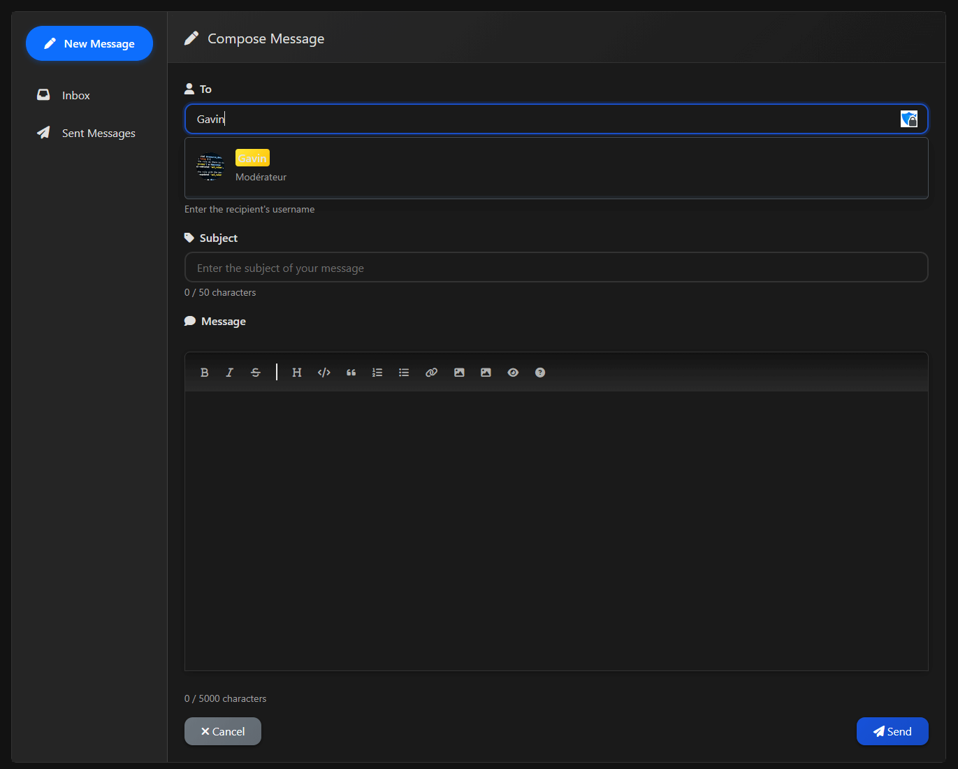 - Maximum subject length: Maximum characters allowed in message subject (default: 50)