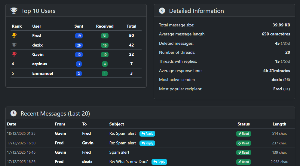 The Private Messaging plugin provides a full-featured messaging system with support for: