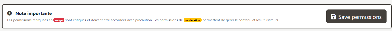 The Important Note above the Permisions in the Permissions Settings on the Admin-Panel will only be displayeed in French.