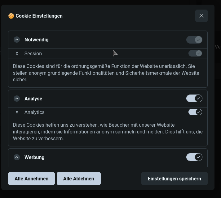 • cookie user Settings solved