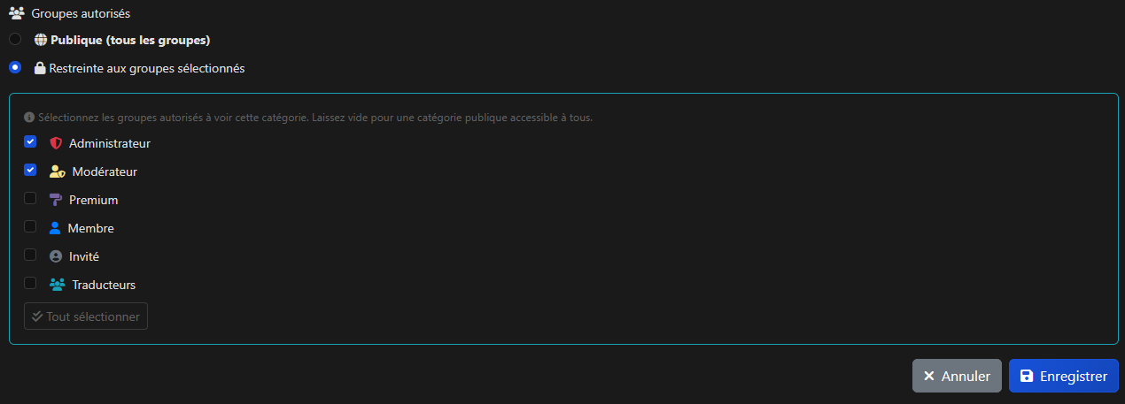 J'ai un petit souci avec les permissions des catégories, je ne sais pas si c'est moi qui a fait quelque chose de travers, mais elles ne sont pas accessibles aux personnes non connectées.