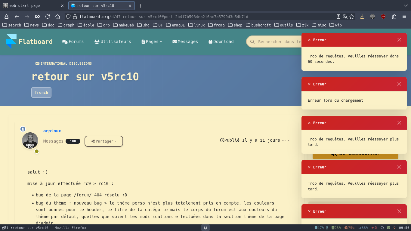 j'ai tenté de répondre sur le post "retour sur v5rc10" mais malgré l'attente, j'ai toujours les popups d'erreur à propos d'un trop grand nombre de requêtes