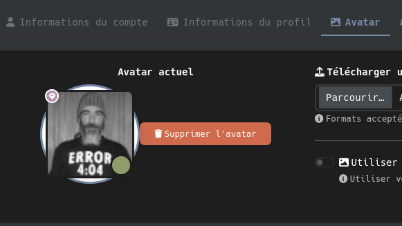 just a little css bug on the profil configuration panel: section avatar, a circle is behind the squared avatar :)